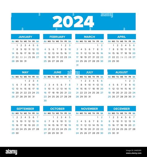 Simple Vector Calendar 2024. Weeks start on Sunday Stock Vector Image from www.alamy.com— www.alamy.com