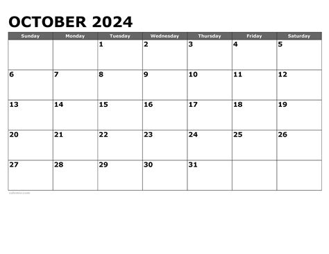 October 2024 Calendar Excel October 2024 Blank Printable Calendar