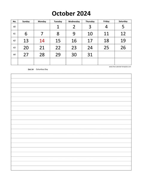 October 2024 Printable Calendar With Notes October 2024 Calendar Maker