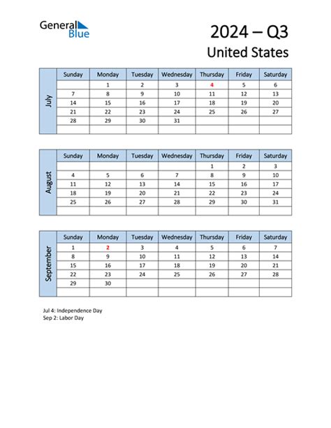 Q3 2024 Calendar Threemonth calendar for Italy Q3 of 2024